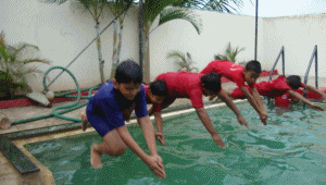 A beautiful and large swimming tank is under construction with all facilities inside the campus. The swimming activity is conducted at a public swimming tank from last 4 yrs. All the children from LKG to IX go for swimming regularly. The swimming Competitions are regularly conducted every year.